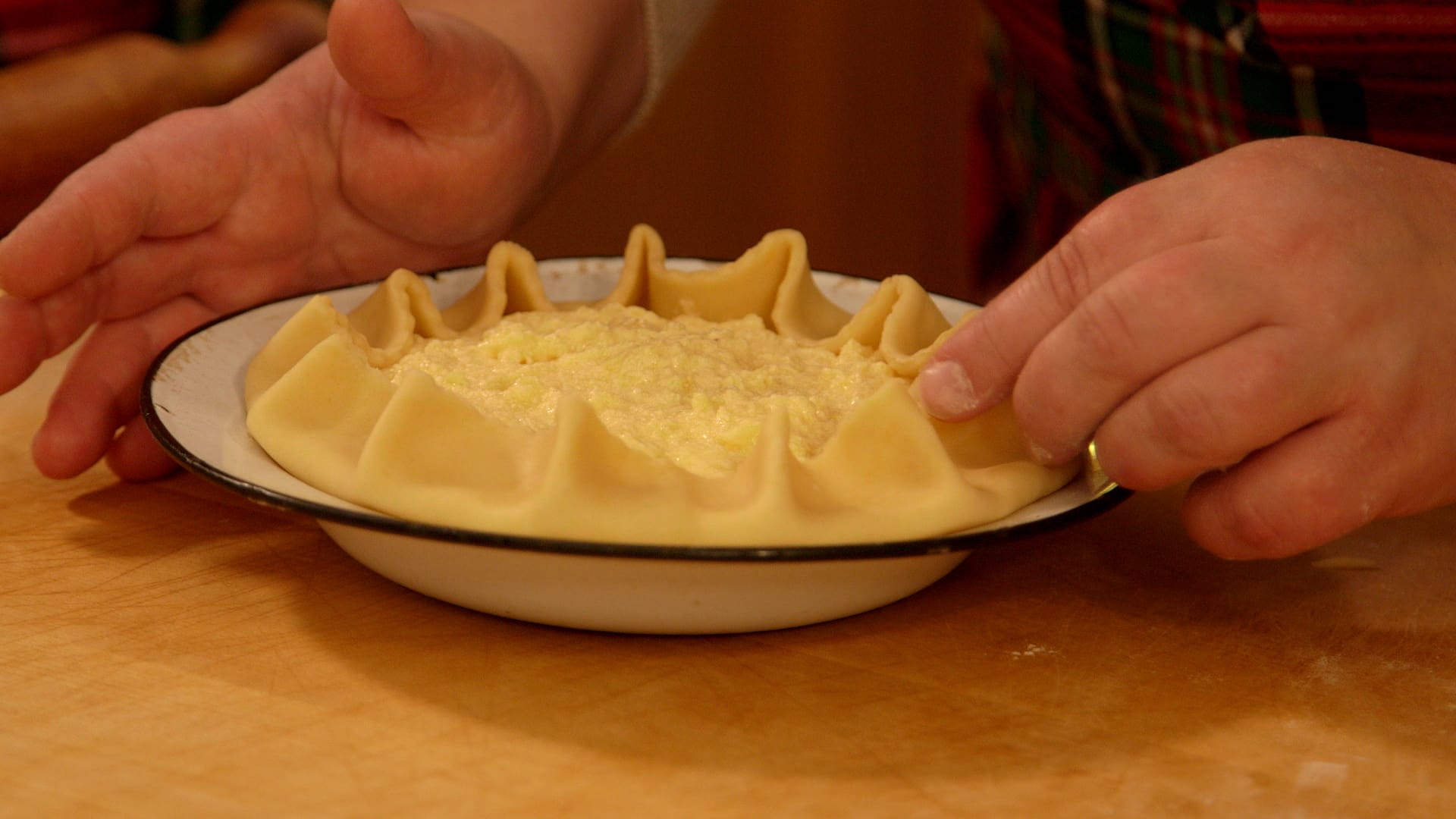 Za izradu kore potrebno je u posudi zajedno pomiješati glatko brašno, suhi kvasac, malo soli, margarin, jaja i mlako mlijeko. Kada tijesto bude jednolično, pokriti krpom i staviti u hladnjak na 15 minuta. Tijesto podijeliti na tri jednake kuglice pa ostaviti sa strane dok pripremite nadjev.